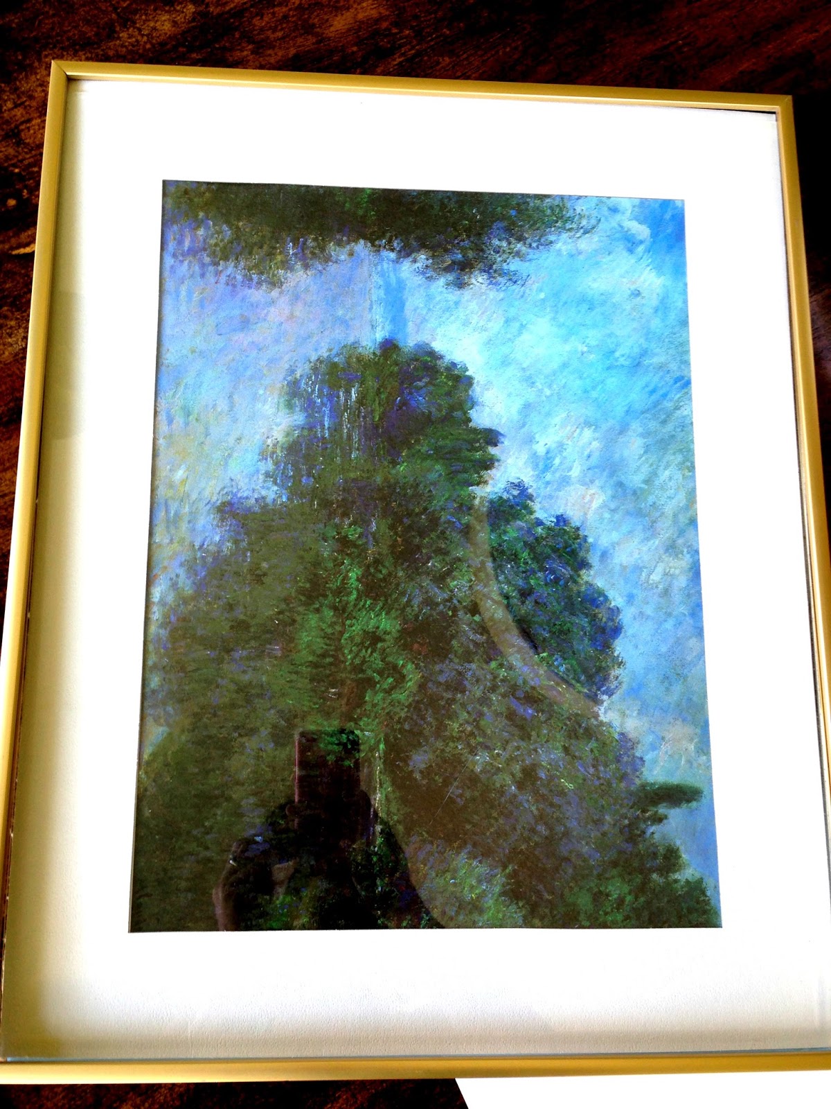 This is the frame I thrifted to use for this project. I popped out the old poster that was in the frame and used the same mat. The frame was already gold, which is what I wanted, so there was no altering the frame.
