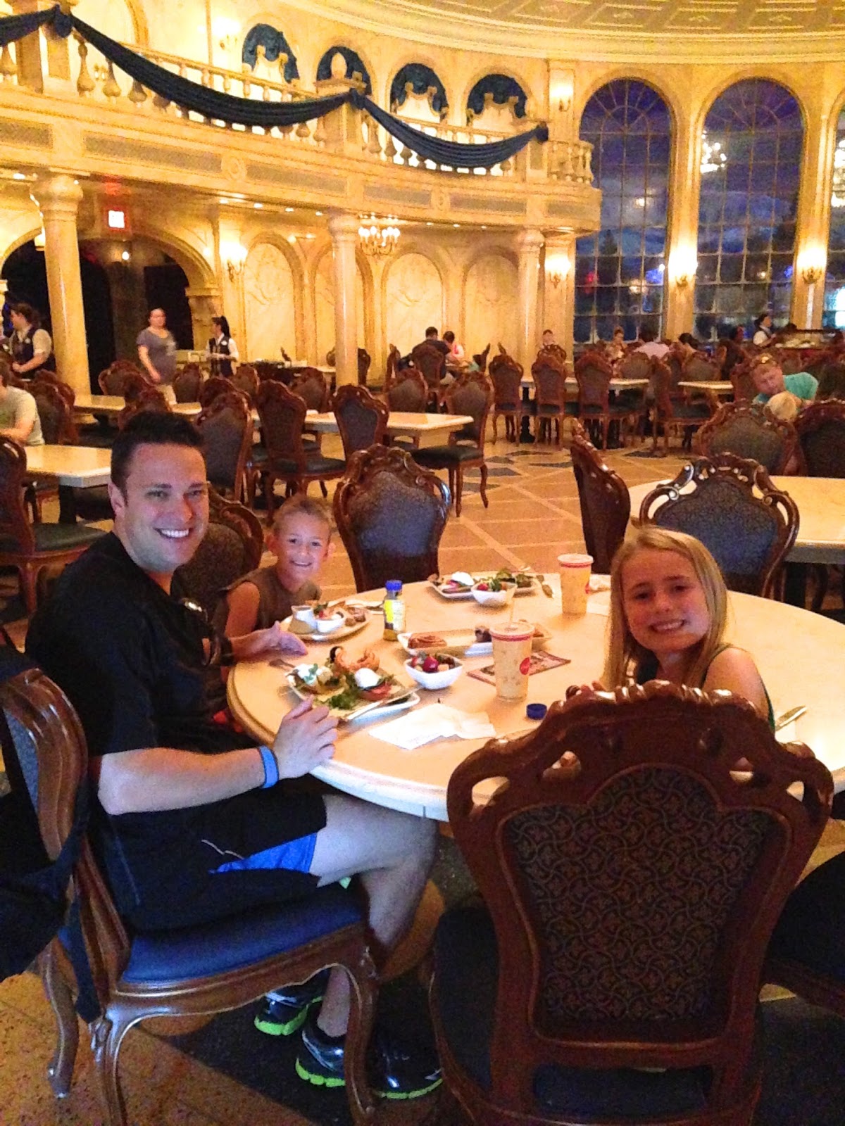 I found out they were doing a “trial run” of serving breakfast at the castle and was able to get reservations a few months out from our trip. You do not see any characters during this breakfast, but you do get into the park early and you get to sit in the Beast’s Castle to eat. The food was pretty good. Steve and I both had poached eggs, bacon, arugula and tomato on a baguette. The kids both had french toast. All breakfasts are served with drinks and croissants and pastries. Overall, I would say it was fun and a good experience, but I wouldn’t be devastated if you can’t get a reservation.